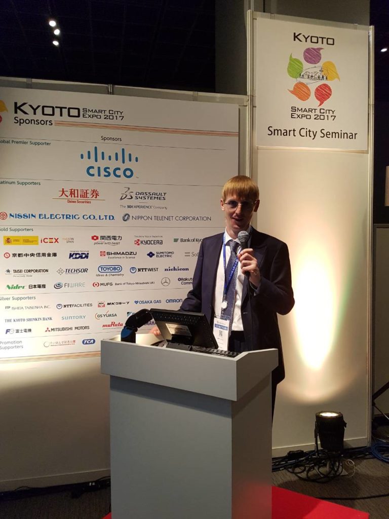 В центре-Момии Такахиро, Президент Всемирной сети Умных городов